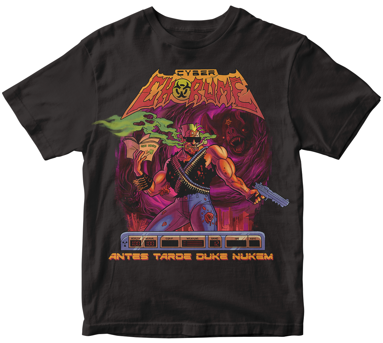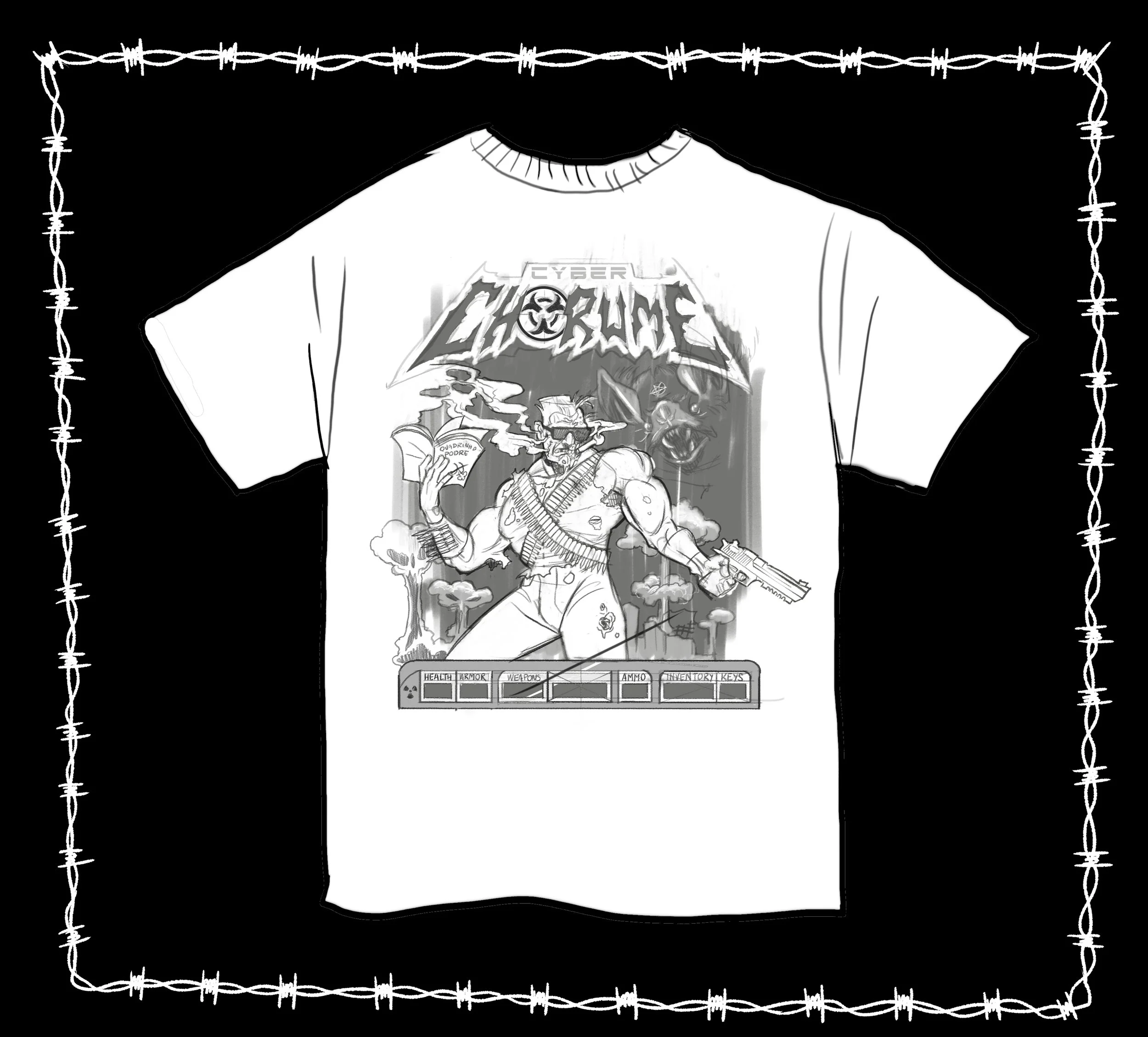 They wanted to make a shirt that referenced both boomer shooters and heavy metal, which are two things that are very much up my alley.