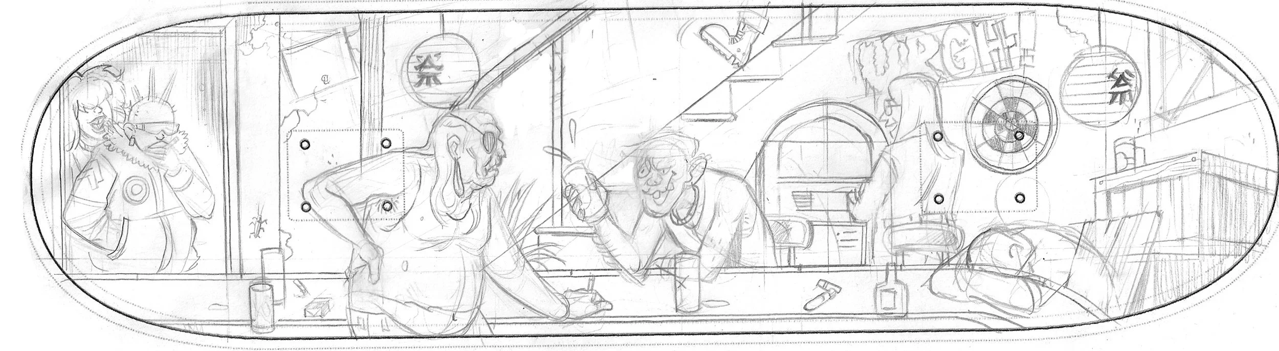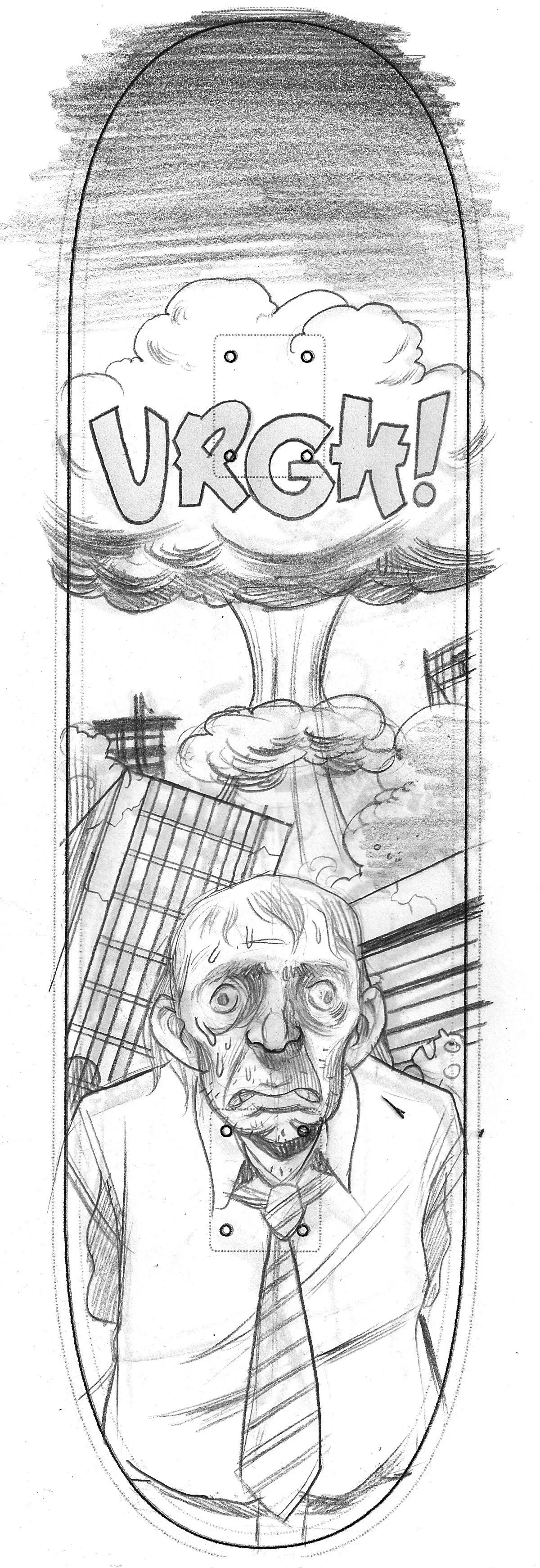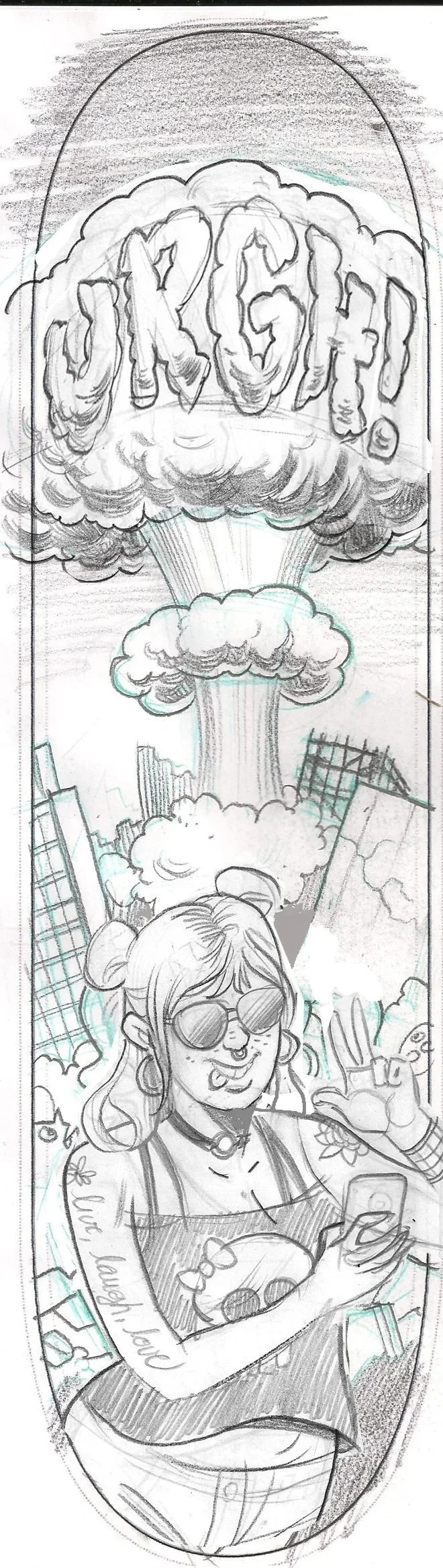In 2019 URGH got in contact with me to design a couple of skateboard decks and three t-shirts. This was probably one of the coolest assignments I got and one of the most challenging, since it’s quite a doozy to design for something that has very specific proportions.